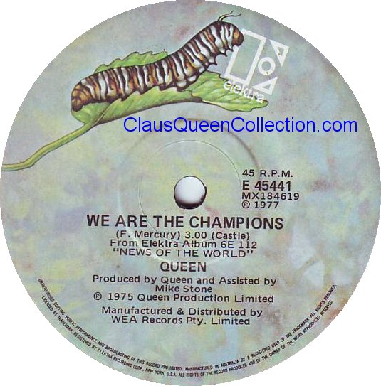 – 1977 – We Are The Champions / We Will Rock You – (Australia E-45441) LABEL