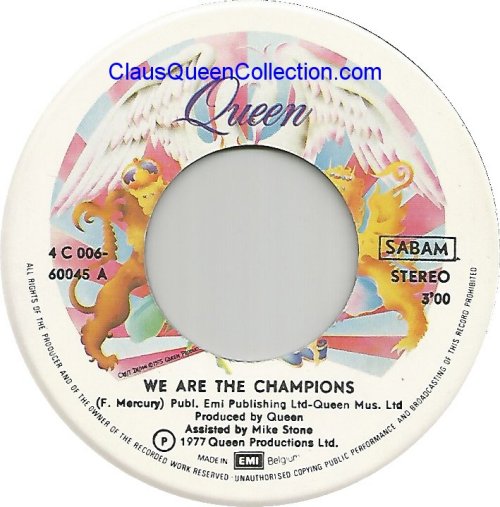 – 1977 – We Are The Champions / We Will Rock You – (promo p/s for export in Belgium) LABEL