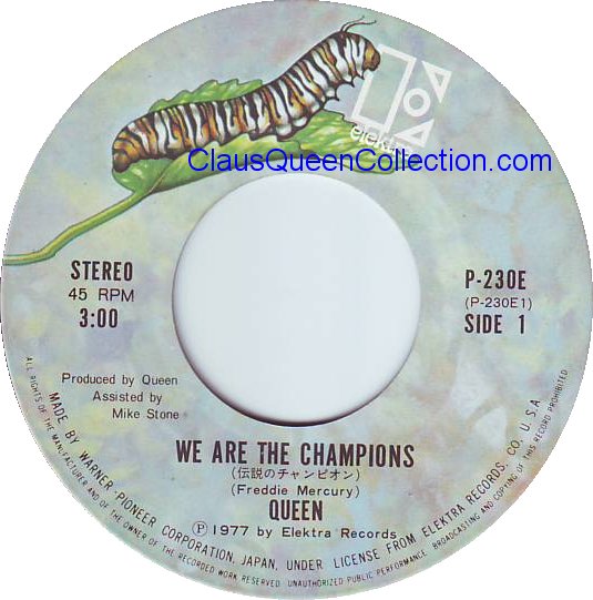 – 1977 – We Are The Champions / We Will Rock You – (Japan Elektra P-230E) LABEL