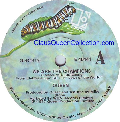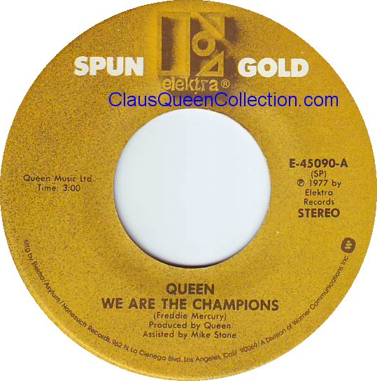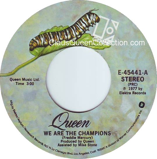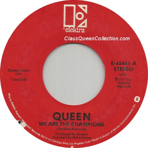 – 1977 – We Are The Champions / We Will Rock You – (USA E-45441) LABEL