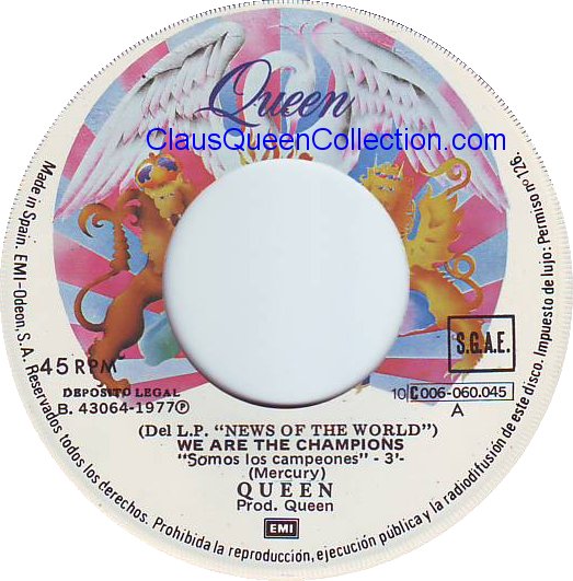 – 1977 – We Are The Champions / We Will Rock You – (Spain EMI 10C 006-060.045 – promo) LABEL