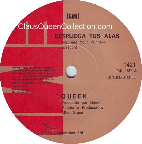 – 1977 – Spread Your Wings / Sheer Heart Attack – (Chile EMI 1421 – no p/s) LABEL