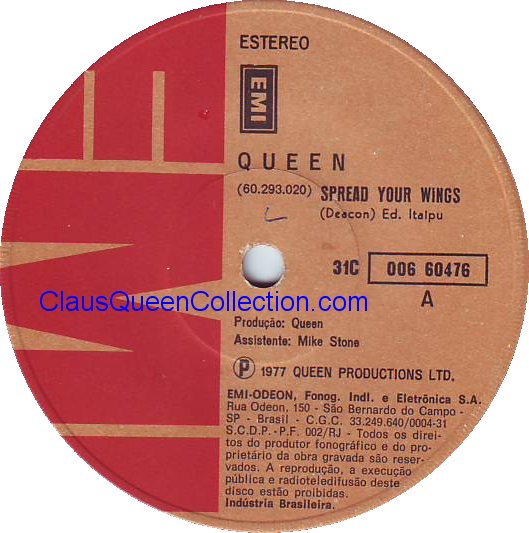– 1977 – Spread Your Wings / Sheer Heart Attack – (Brazil EMI 31C 006-60476 – no p/s) LABEL