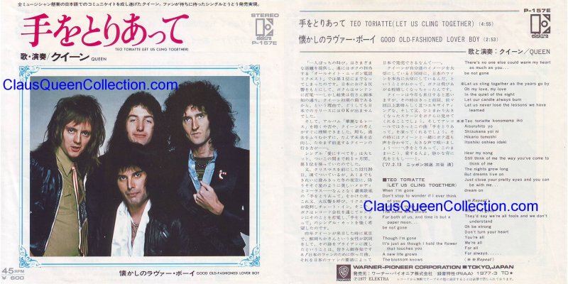 – 1977 – Teo Torriatte (Let Us Cling Together) / Good Old F. – (Japan Elektra P-157E) LABEL