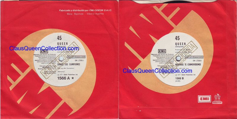 – 1977 – We Are The Champions / We Will Rock You – (Argentina EMI 2708 – promo – no p/s) LABEL