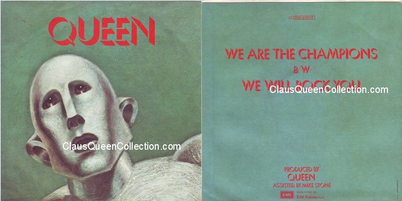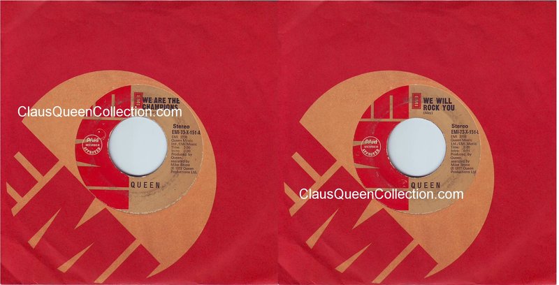 – 1977 – We Are The Champions / We Will Rock You – (USA E-45441 – red label) LABEL