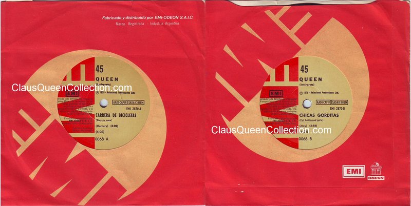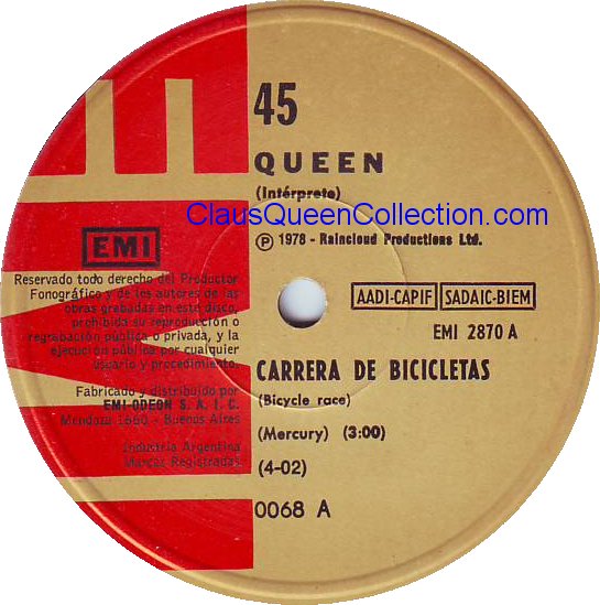 – 1978 – Bicycle Race / Fat Bottomed Girls – (Argentina EMI 2870 – no p/s) LABEL