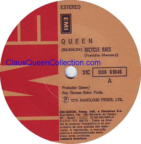 – 1978 – Bicycle Race / Fat Bottomed Girls – (Brazil EMI 31C 006-61846) LABEL