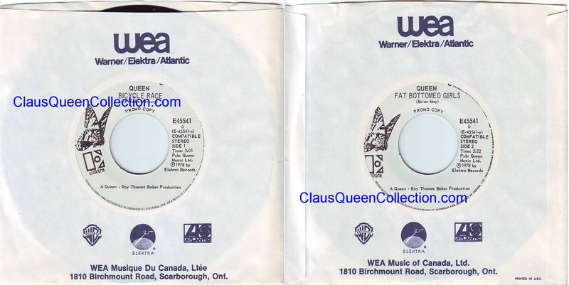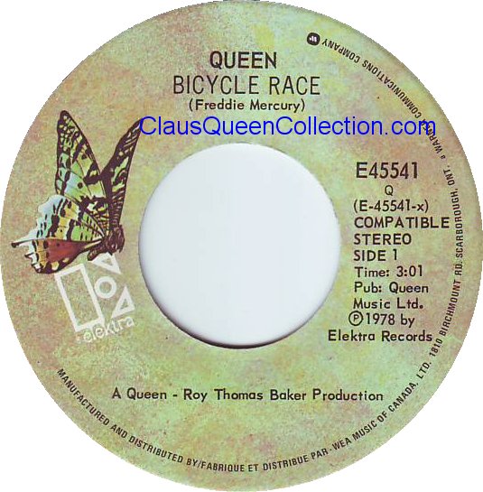 – 1978 – Bicycle Race / Fat Bottomed Girls – (Canada E-45541 – no p/s) LABEL