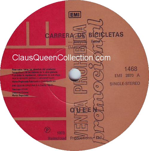– 1978 – Bicycle Race / Fat Bottomed Girls – (Chile EMI 1468 – promo no p/s) LABEL