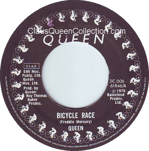 – 1978 – Bicycle Race / Fat Bottomed Girls – (Italy EMI 3C 006-61846 – pirate sleeve) LABEL