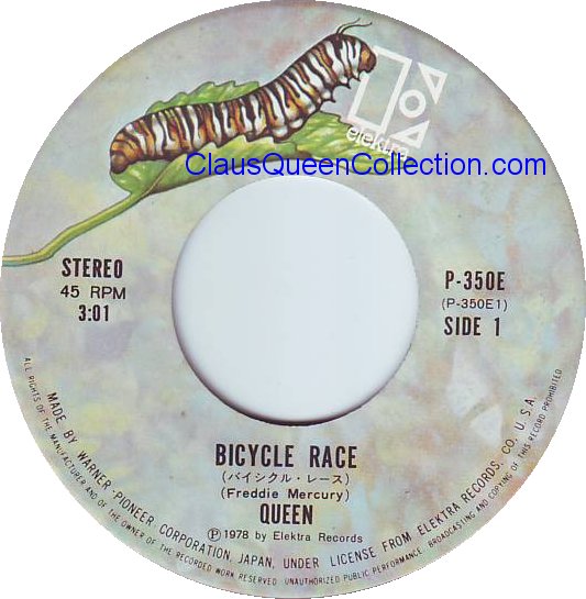 – 1978 – Bicycle Race / Fat Bottomed Girls – (Japan Elektra P-350E) LABEL