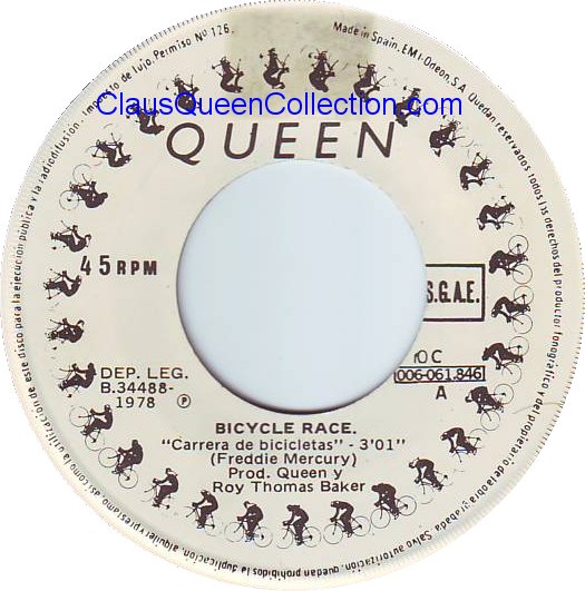 – 1978 – Bicycle Race / Fat Bottomed Girls – (Spain EMI 10 C 006-061846) LABEL