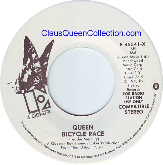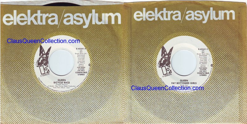 – 1978 – Bicycle Race / Fat Bottomed Girls – (USA E-45541 promo no p/s) LABEL