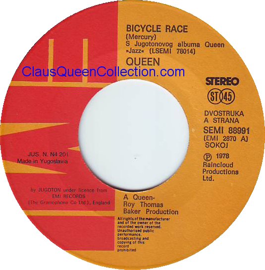 – 1978 – Bicycle Race / Fat Bottomed Girls – (Yugoslavia SEMI 88991) LABEL