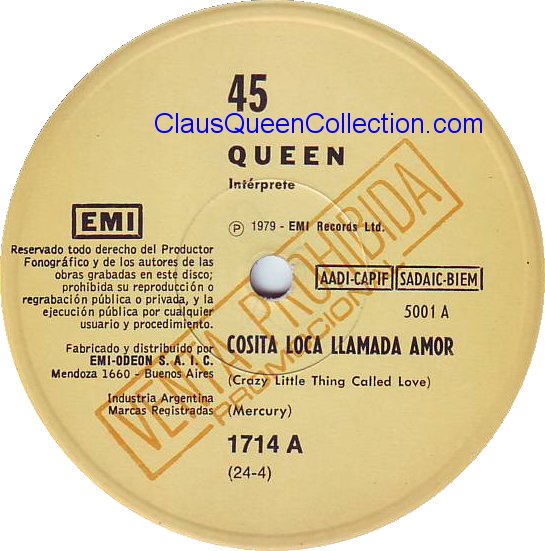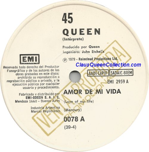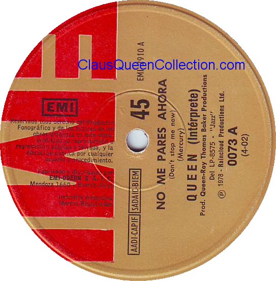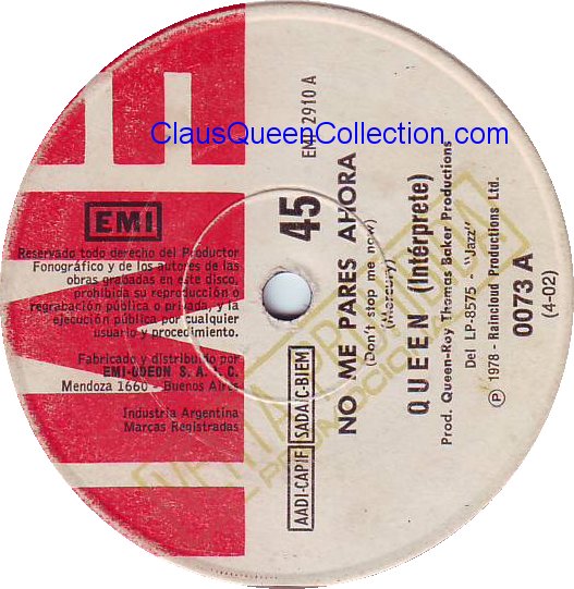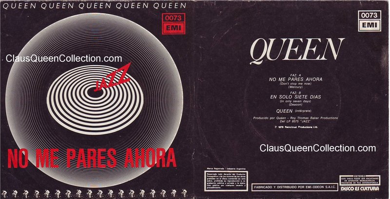 – 1978 – Don’t Stop Me Now / In Only Seven Days – (Argentina EMI 2910 – promo – no p/s) LABEL
