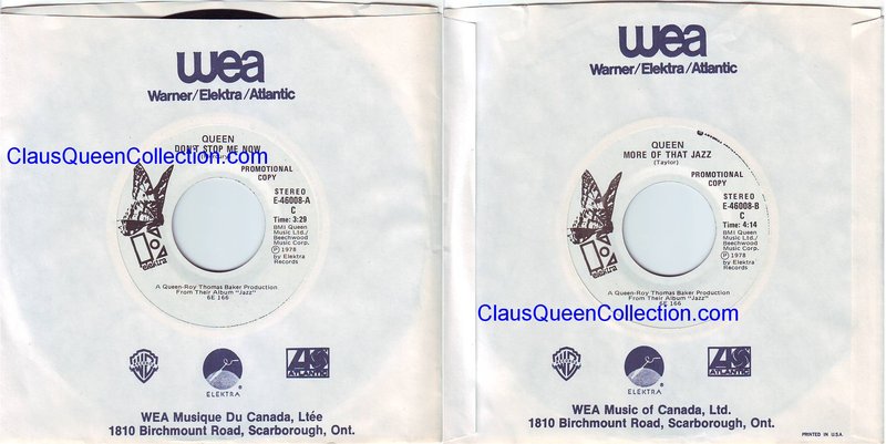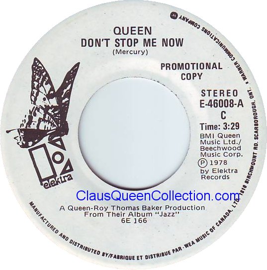 – 1978 – Don’t Stop Me Now / More Of That Jazz – (Canada E-46008 – promo no p/s) LABEL