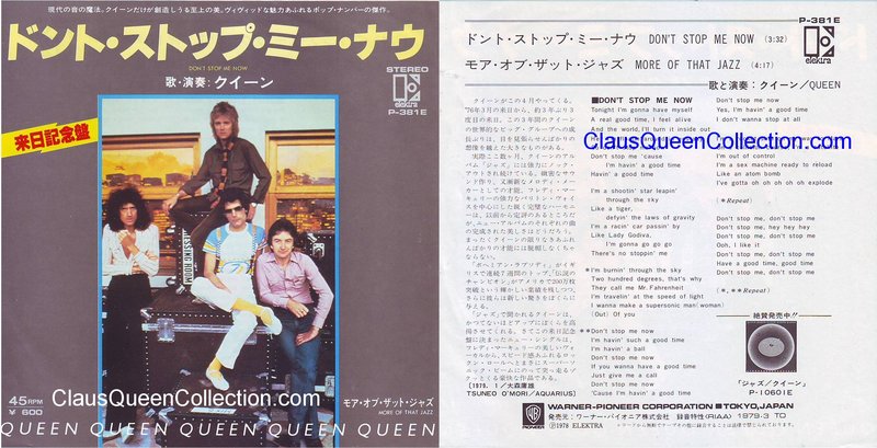 – 1978 – Don’t Stop Me Now / More Of That Jazz – (Japan Elektra P-381E) LABEL