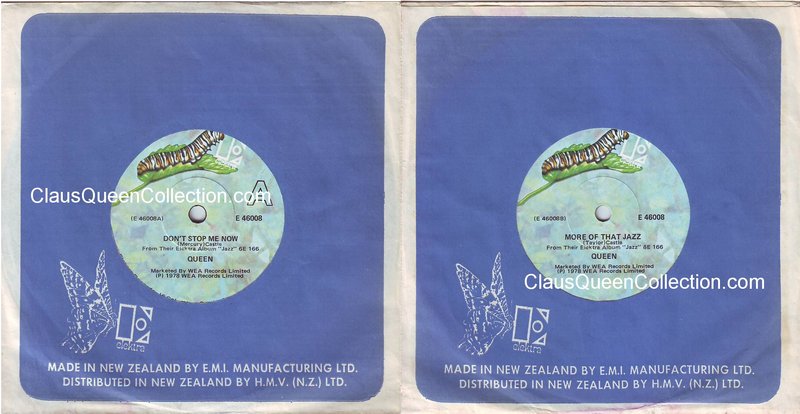 – 1978 – Don’t Stop Me Now / More Of That Jazz – (New Zeland E-46008 – no p/s) LABEL