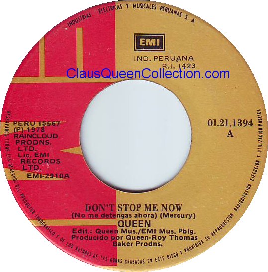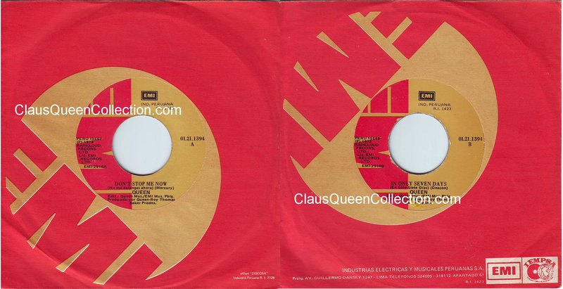 – 1978 – Don’t Stop Me Now / In Only Seven Days – (Perù EMI 01.21.1394 – no p/s) LABEL