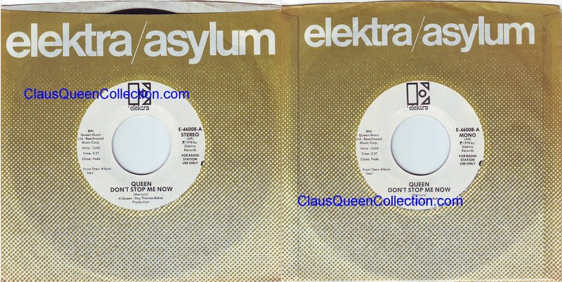 – 1978 – Don’t Stop Me Now (stereo) / Don’t Stop Me N. (mono) – (USA E-46008 promo no p/s) LABEL