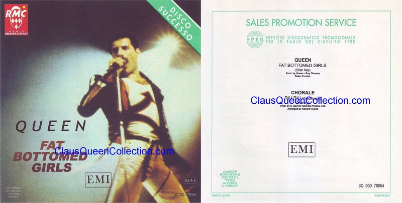 – 1978 – Fat Bottomed Girls / Riu Riu (Chorale) – (Italy EMI 3C 000-79054 – juke box – Sper sleeve) LABEL