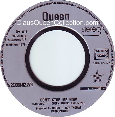 – 1978 – Don’t Stop Me Now / In Only Seven Days – (France EMI 2C 008 62276) LABEL