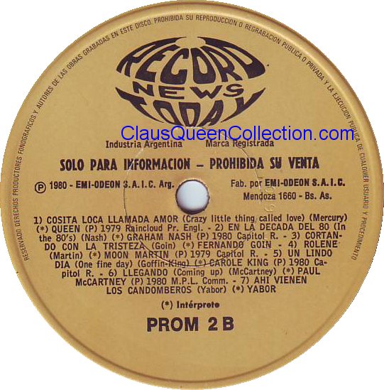– 1980 – Another One Bites The Dust / Dragon Attack – (Argentina EMI 1745 – promo no p/s) LABEL