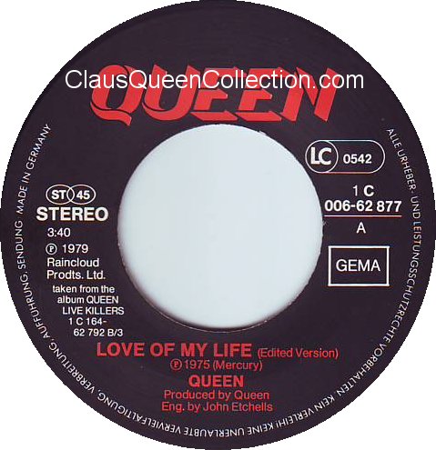 – 1978 – Don’t Stop Me Now / In Only Seven Days – (Germany EMI 1C 006-62276) LABEL