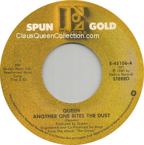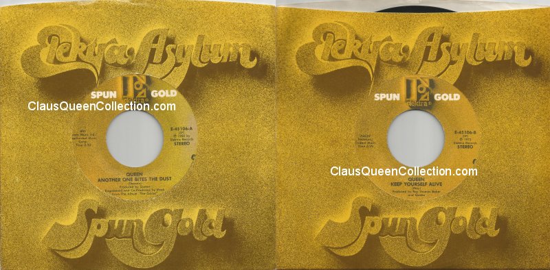 – 1980 – Another One Bites The Dust / Keep Yourself Alive – (USA E-45106 – Spun Gold no p/s) LABEL