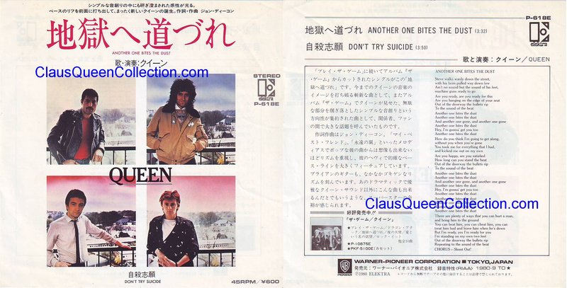 – 1980 – Another One Bites The Dust / Don’t Try Suicide – (Japan Elektra P-618E) LABEL