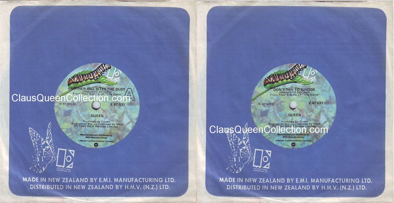 – 1980 – Another One Bites The Dust / Don’t Try Suicide – (New Zeland E-47031 – no p/s) LABEL