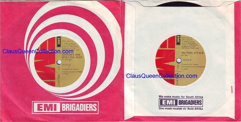 – 1980 – Another One Bites The Dust / Dragon Attack – (South Africa EMIJ 4312 – no p/s) LABEL
