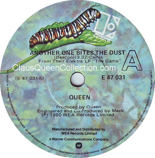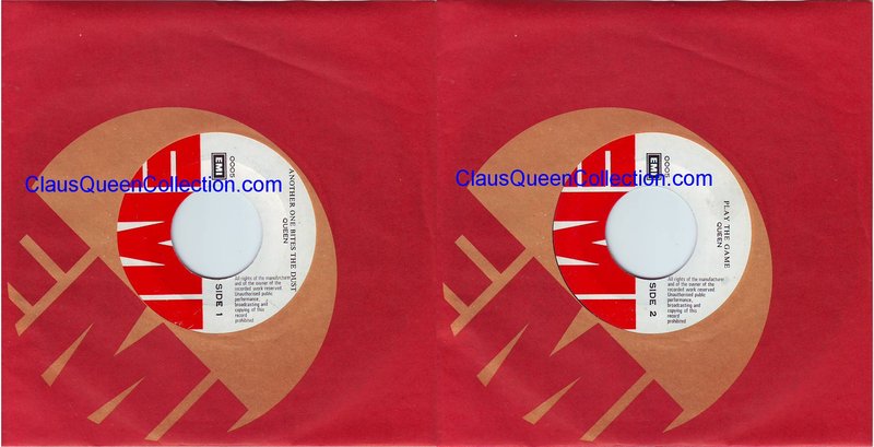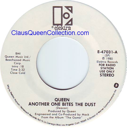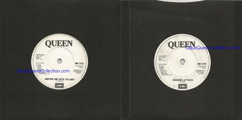 – 1980 – Another One Bites The Dust / Dragon Attack – (UK EMI 5102 – white label) LABEL