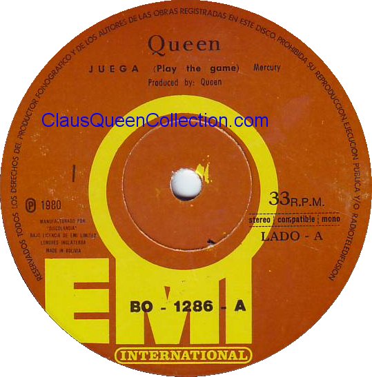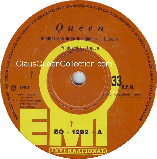 – 1980 – Another One Bites The Dust / Dragon Attack – (Bolivia EMI BO-1292 – no p/s) LABEL