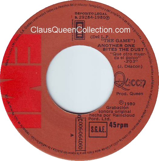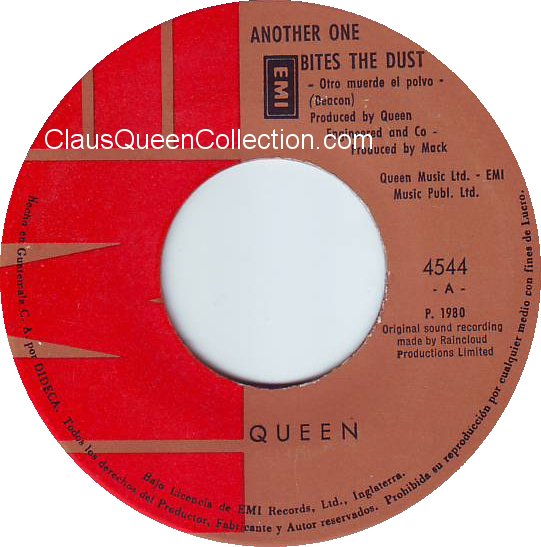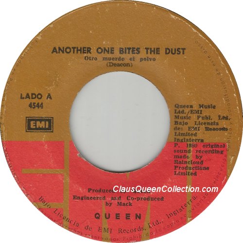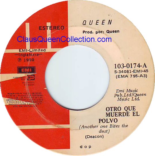 – 1980 – Another One Bites The Dust / Dragon Attack – (Ecuador EMI 103-0174 – no p/s) LABEL