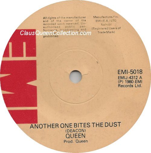 – 1980 – Another One Bites The Dust / Dragon Attack – (Kenya – EMIJ 4312 – no p/s) LABEL