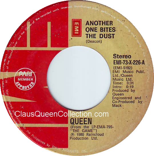 – 1980 – Another One Bites The Dust / Dragon Attack – (Philippines EMI 73-X-226 – no p/s) LABEL