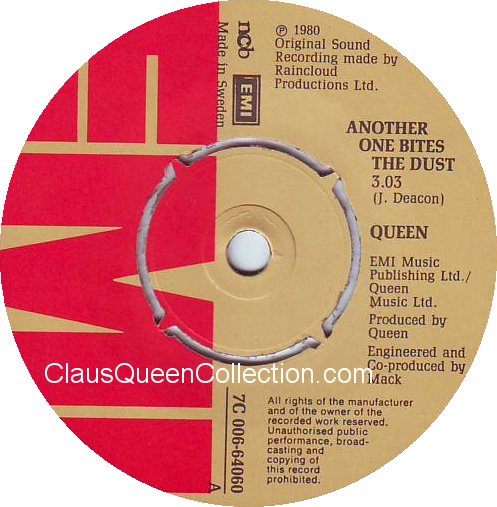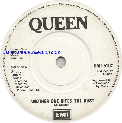 – 1980 – Another One Bites The Dust / Dragon Attack – (UK EMI 5102) LABEL