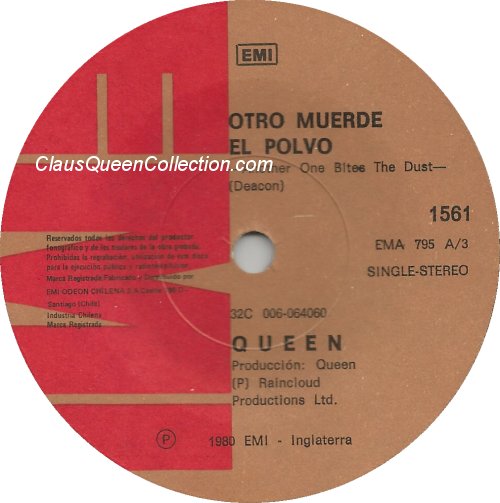 – 1980 – Another One Bites The Dust / Dragon Attack – (Chile EMI 1561 – no p/s) LABEL
