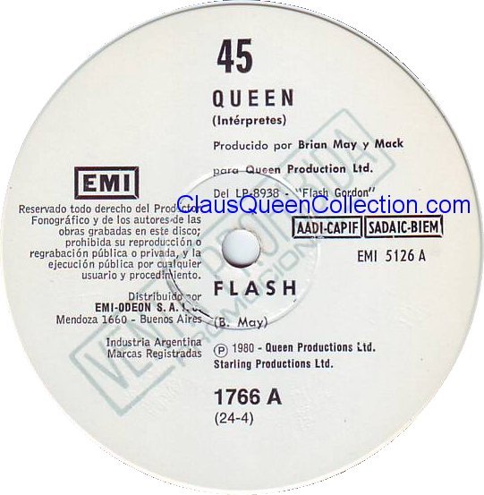 – 1980 – Flash / Football Fight – (Argentina EMI 1766 – promo no p/s) LABEL
