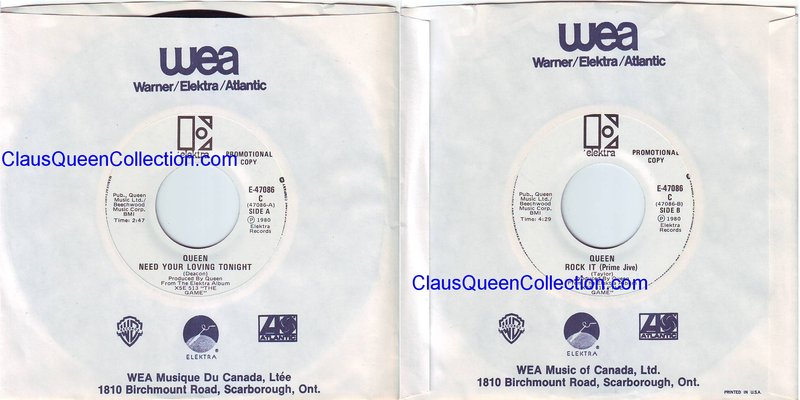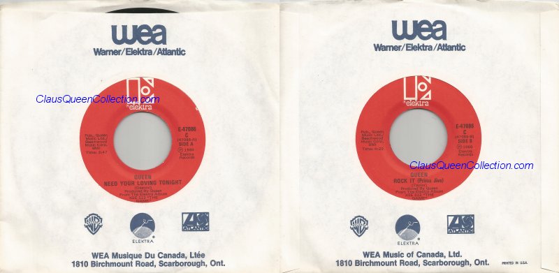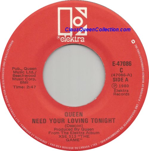 – 1980 – Need Your Loving Tonight / Rock It (Prime Jive) – (Canada E-47086 – no p/s) LABEL