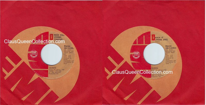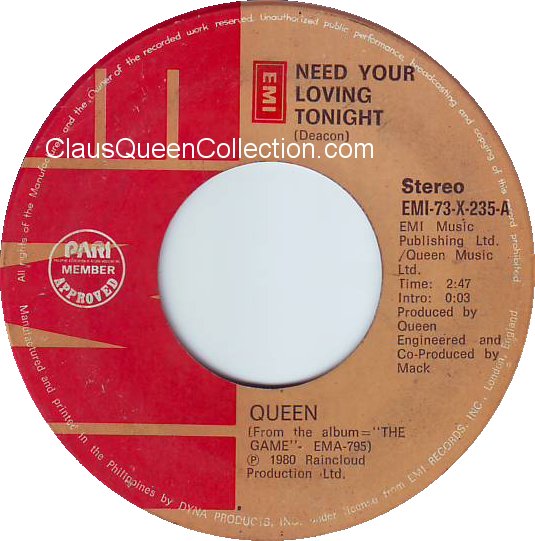 – 1980 – Need Your Loving Tonight / Rock It (Prime Jive) – (Philippines EMI-79-X-235 – no p/s) LABEL