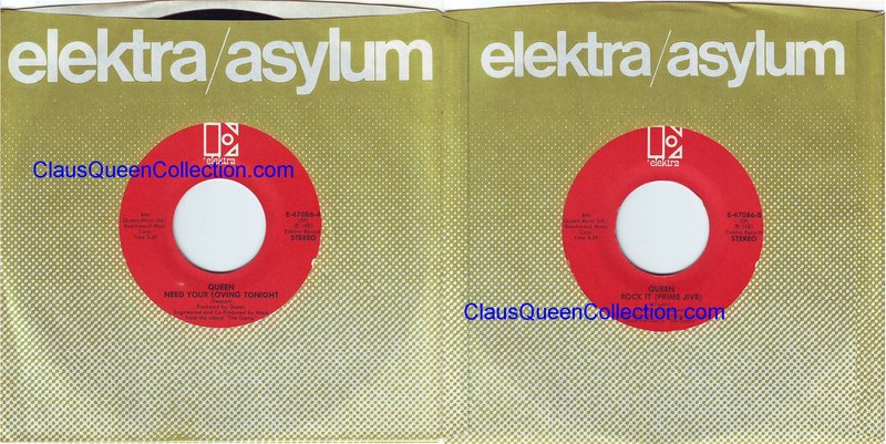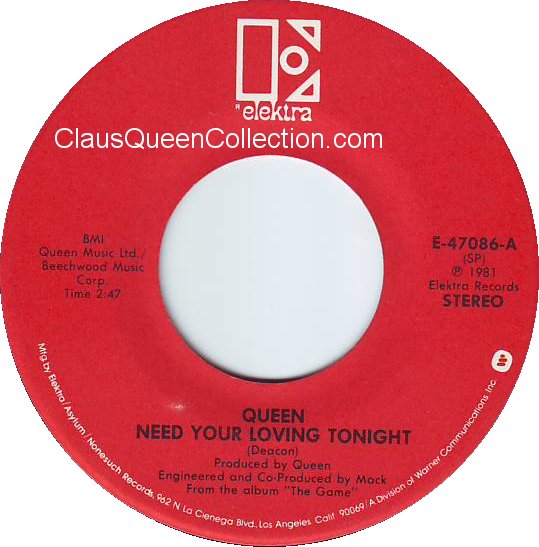 – 1981 – Need Your Loving Tonight / Rock It (Prime Jive) – (USA E-47086 no p/s) LABEL