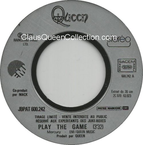 – 1980 – Another One Bites The Dust / Dragon Attack – (France EMI 2C-008 64060 – Juke Box) LABEL