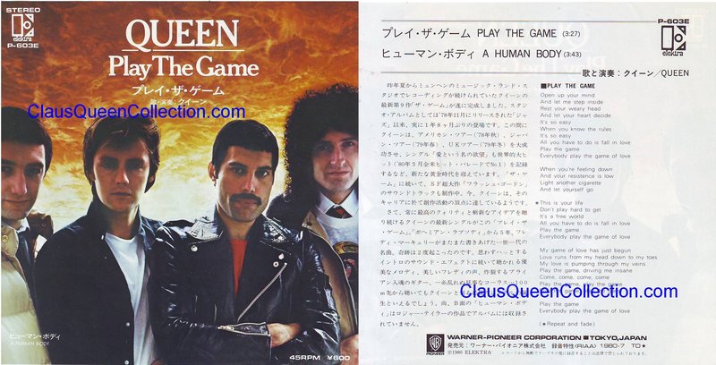 – 1980 – Play The Game / A Human Body – (Japan Elektra P-603E – promo w/l) LABEL