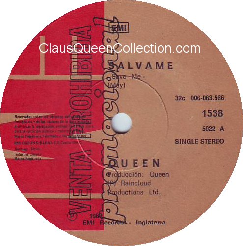 – 1980 – Another One Bites The Dust / Dragon Attack – (Chile EMI 1561 – promo no p/s) LABEL