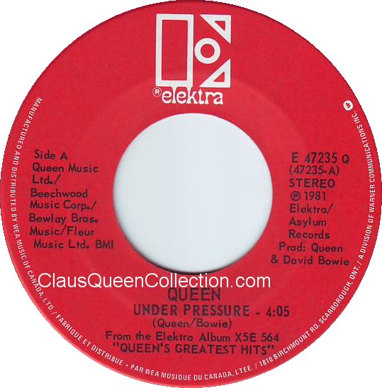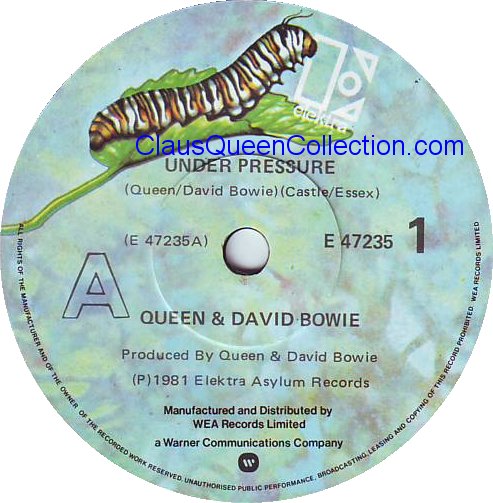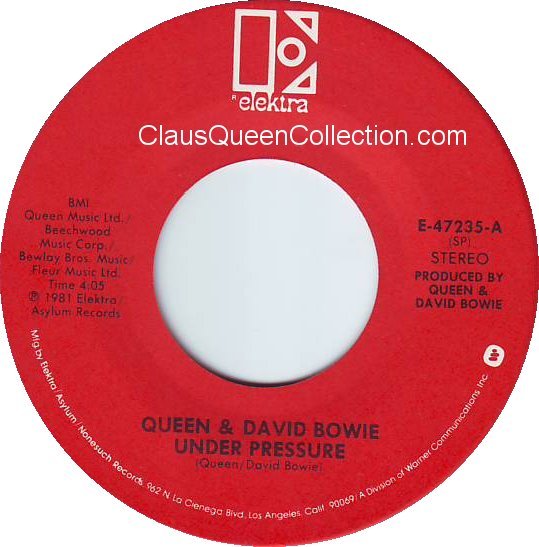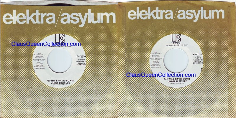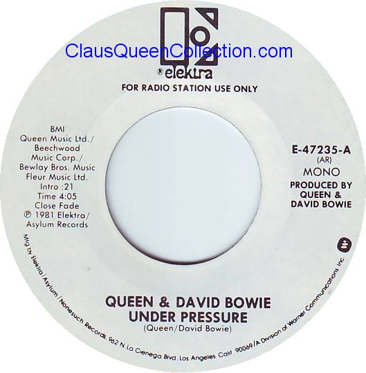 – 1981 – Under Pressure (stereo) / Under Pressure (mono) – (USA E-47235 promo no p/s) LABEL