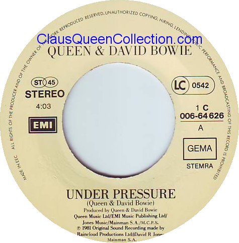 – 1981 – Under Pressure / Soul Brother – (Holland EMI 1C 006-64626) LABEL