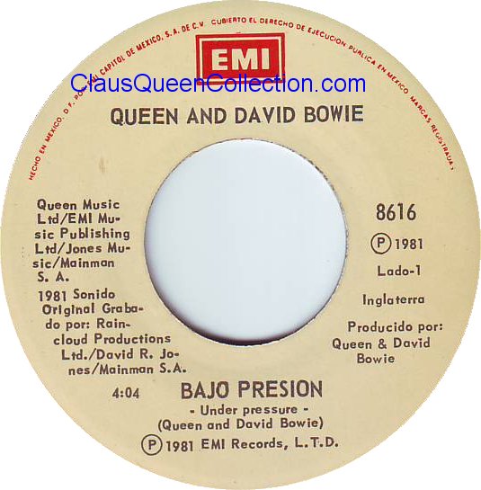 – 1981 – Under Pressure / Soul Brother – (Mexico EMI 33C 006-64626/8616) LABEL